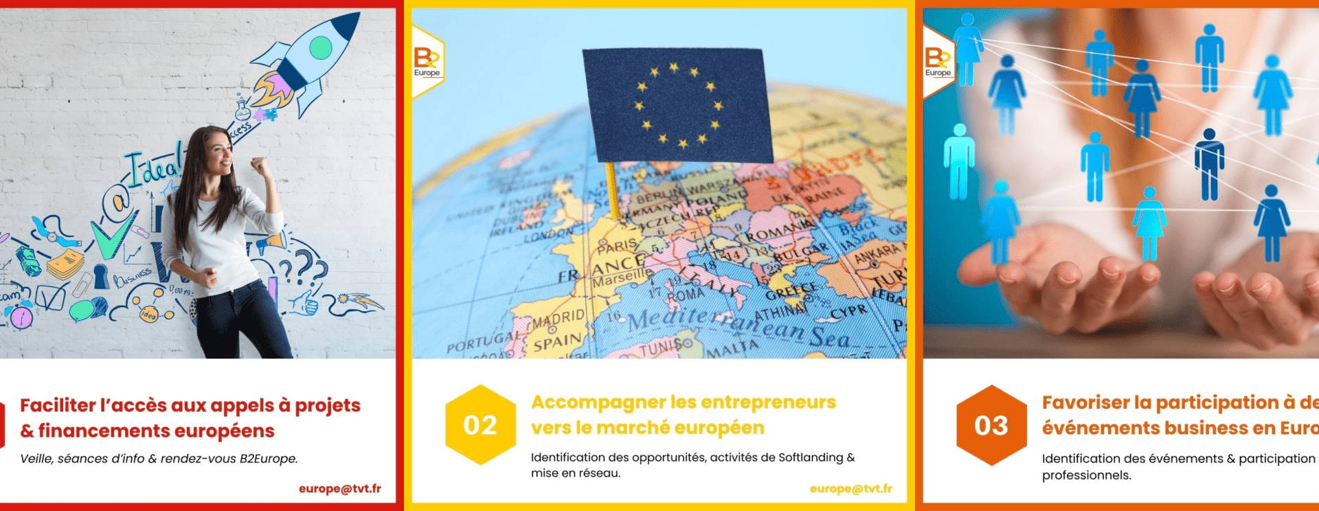 - Veille, séances d’informations & rendez-vous B2Europe ;