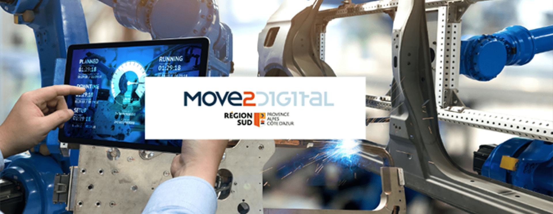 En région Sud, Move2Digital constitue une initiative inédite ayant pour objectif principal l’appropriation par les entreprises des filières industrielles stratégiques régionales des technologies liées à l’Intelligence Artificielle, la Cybersécurité et aux objets connectés (IoT). Un portefeuille de services dédiés, complémentaires à l’offre régionale existante, sera proposé aux PME selon un parcours adapté : diagnostic de la maturité numérique et audit pour la transformation digitale, test et expérimentation de technologies, définition de formations adaptées aux personnels, appui pour la recherche de financement, mise en réseau des écosystèmes d’innovation.